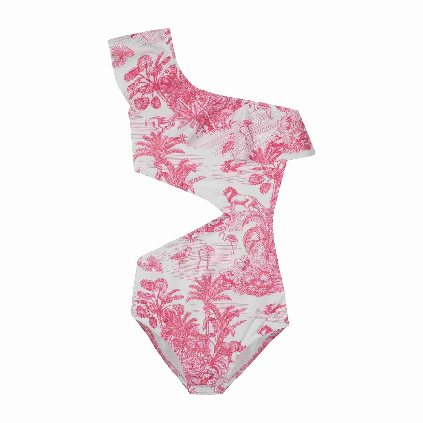 GIRL'S ONE SHOULDER CUT OUT JUNGLE PINK