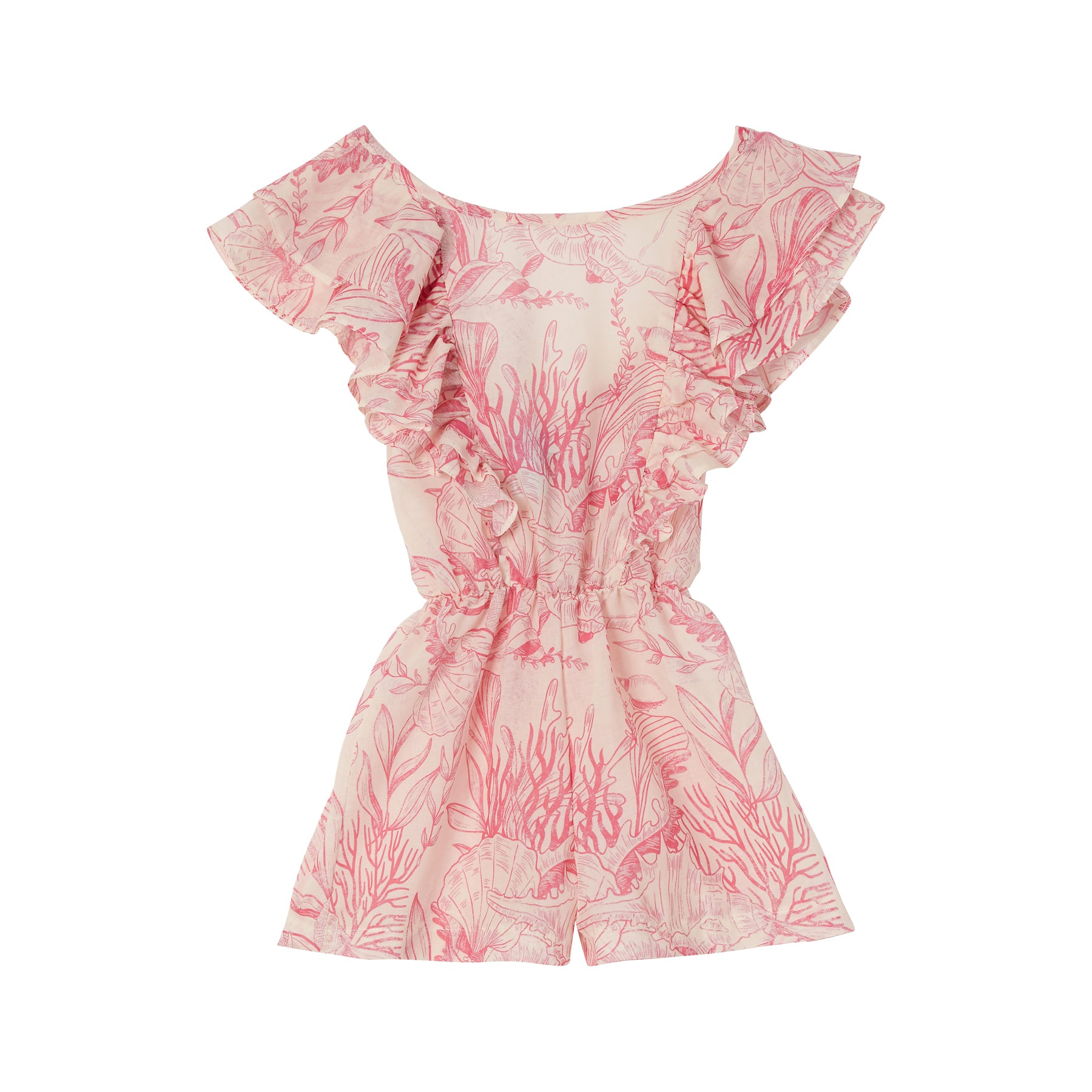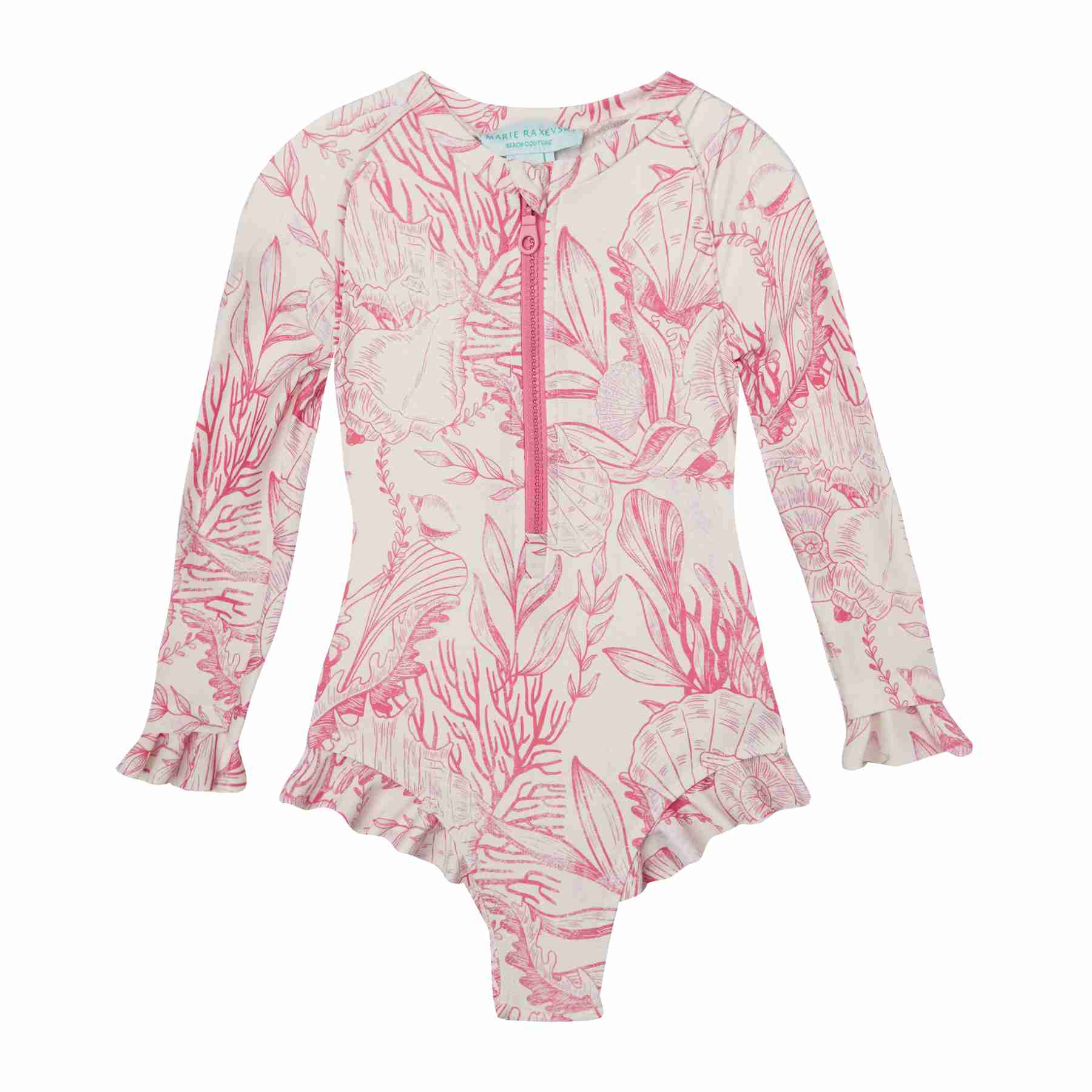 GIRL'S ONE PIECE LONG SLEEVE RUFFLES THALASSA PINK