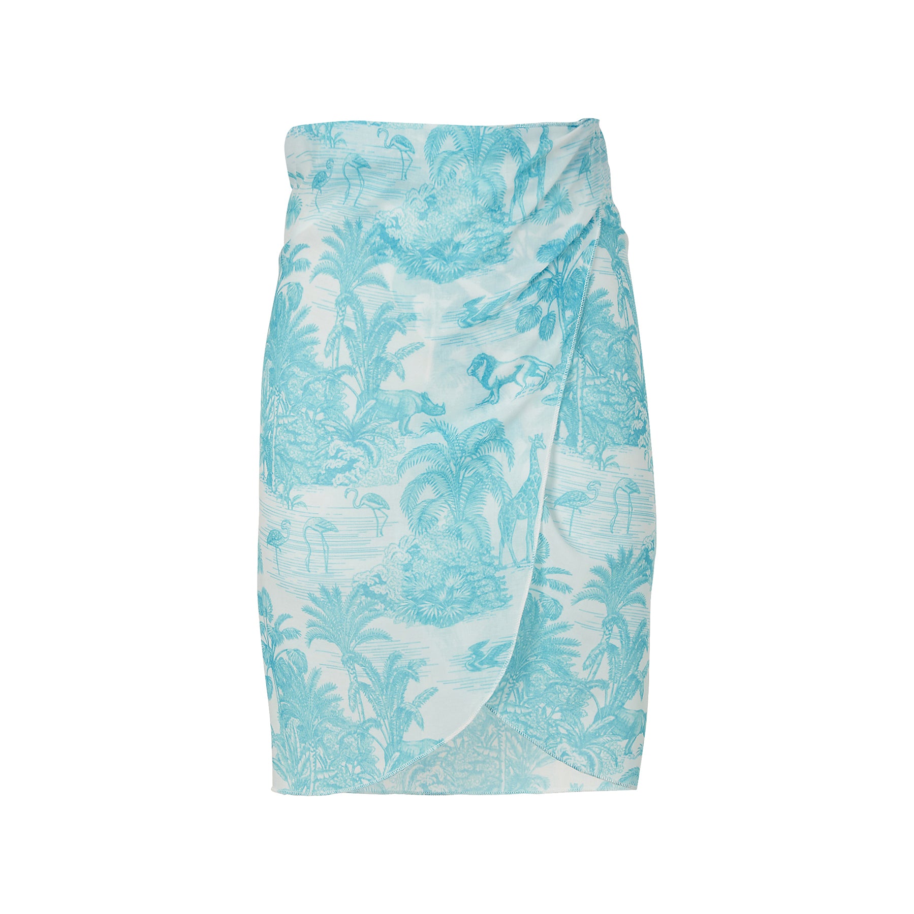 The Jungle Turquoise Pareo is a lightweight and elegant beach essential, designed with a delicate jungle-inspired print in fresh turquoise tones. Featuring tropical scenery and wildlife motifs, it perfectly complements the Jungle Turquoise swimwear collection while adding a stylish touch to any beach or poolside look.Made from soft, breathable fabric, this pareo is easy to wrap and tie around the waist, creating a flattering and adjustable fit. Its versatile design makes it ideal as a beach cover-up, skirt, or light wrap for warm summer days.