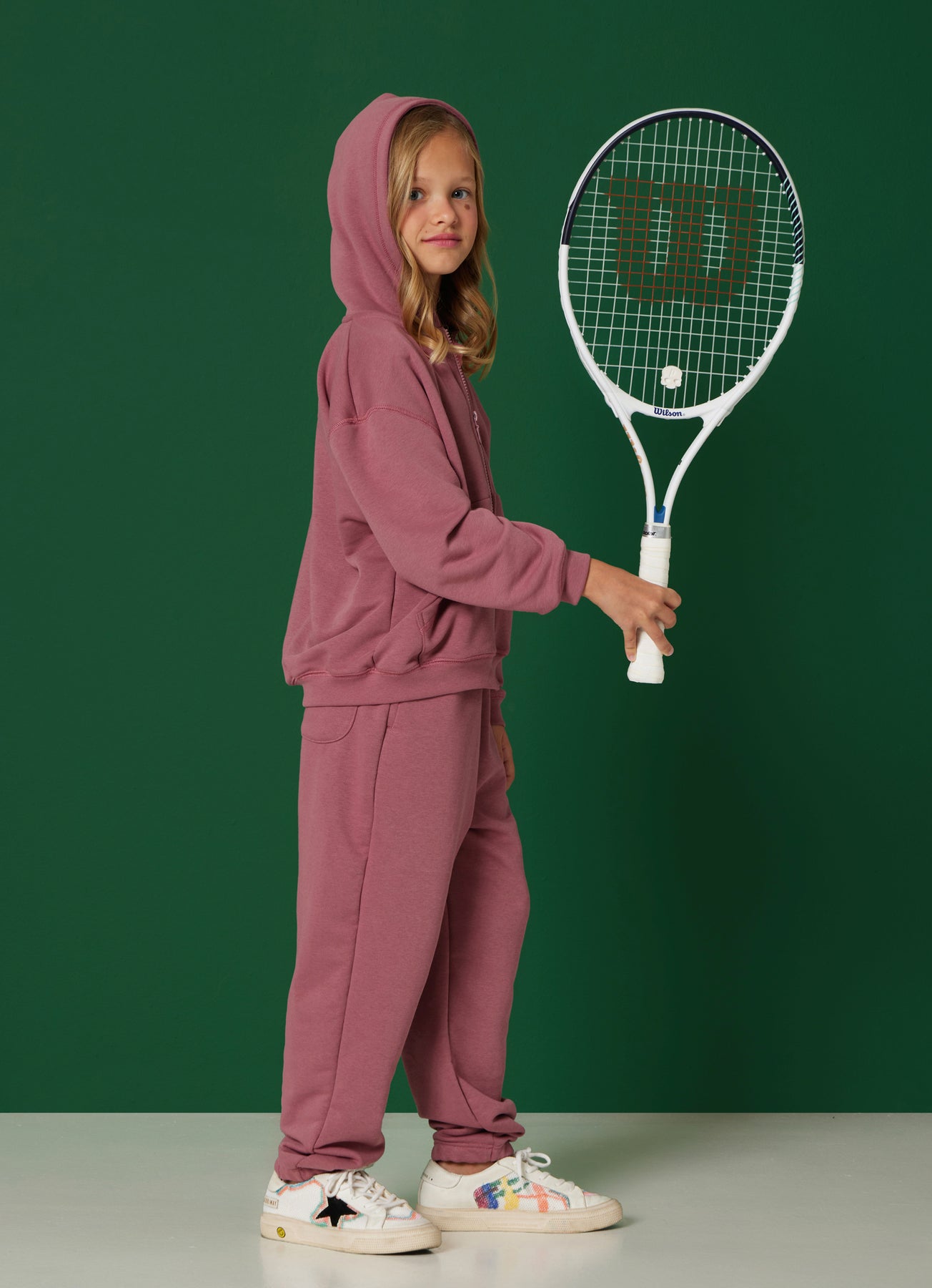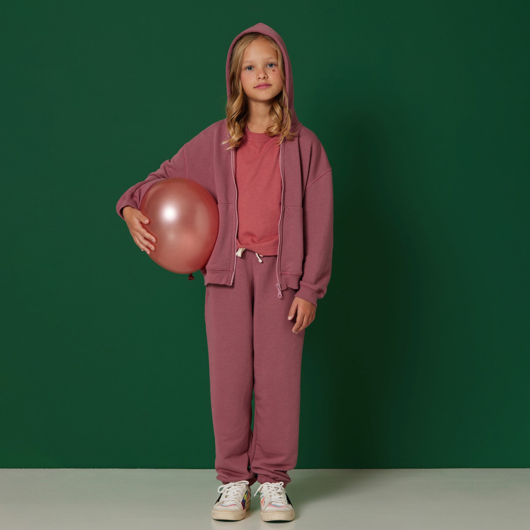 This cozy kids’ hoodie is designed for everyday comfort and effortless style. Made from soft, breathable fabric, it features a relaxed fit that allows easy movement throughout the day. The full front zipper makes it practical for layering, while the spacious front pockets add convenience and warmth. The hood provides extra comfort and a laid-back look, perfect for school, playtime, or weekend outings. Its warm mauve tone gives it a modern, stylish feel that pairs easily with any outfit. Ideal for all-day wear.