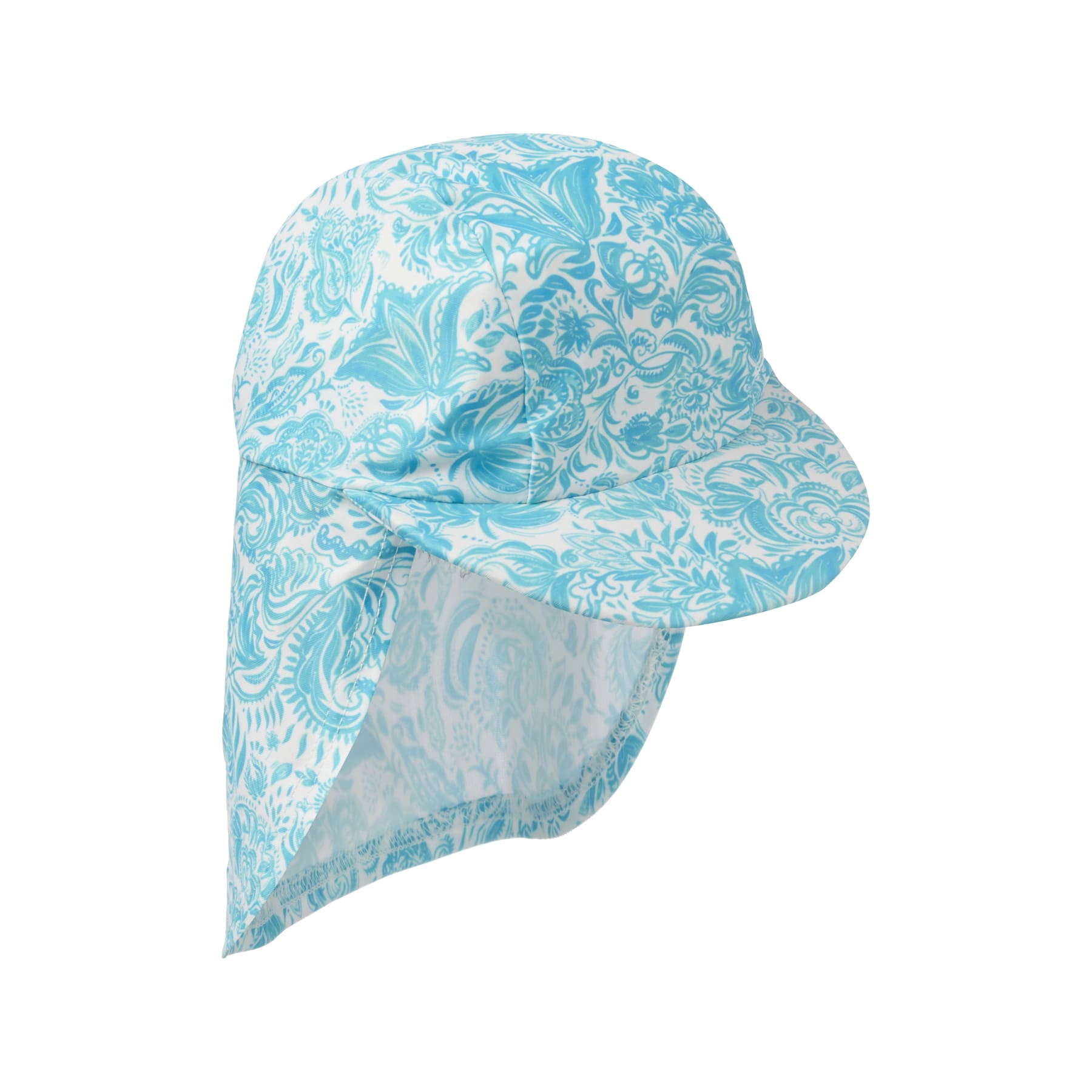 Our new entry UV-hats will keep your kiddos protected from the sun, while at the same time conveying some serious stylish vibes! Decorated in our signature prints and with UPF 50+ sun protection. Prepare to turn heads while splashing in the water or building sandcastles by the beach. The neck flap on the back offers perfect neck and ear coverage, while the soft and flexible front brim allows the hat to be easily packed in a bag without worries of being bended or damaged. This one features our paisley turquoise print in white and turquoise hues and can be perfectly combined with our matching swimwear and beach accessories.