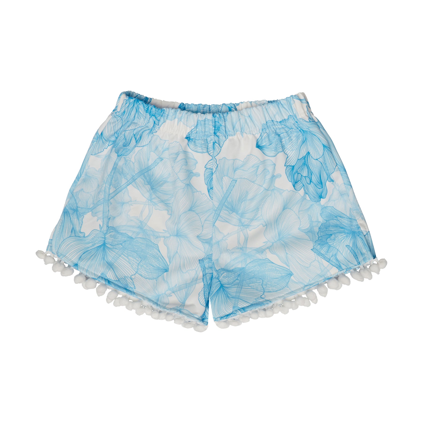 Dress to impress with our super cute collection of girly pom-pom shorts, the ultimate easy breezy pieces for your little angels during the summer months. Perfect for combining with our matching swimsuits but also for taking blissful strolls with mommy and daddy. This pair is a colorful treat for the eyes, decorated in our signature floral print in hues of baby blue.