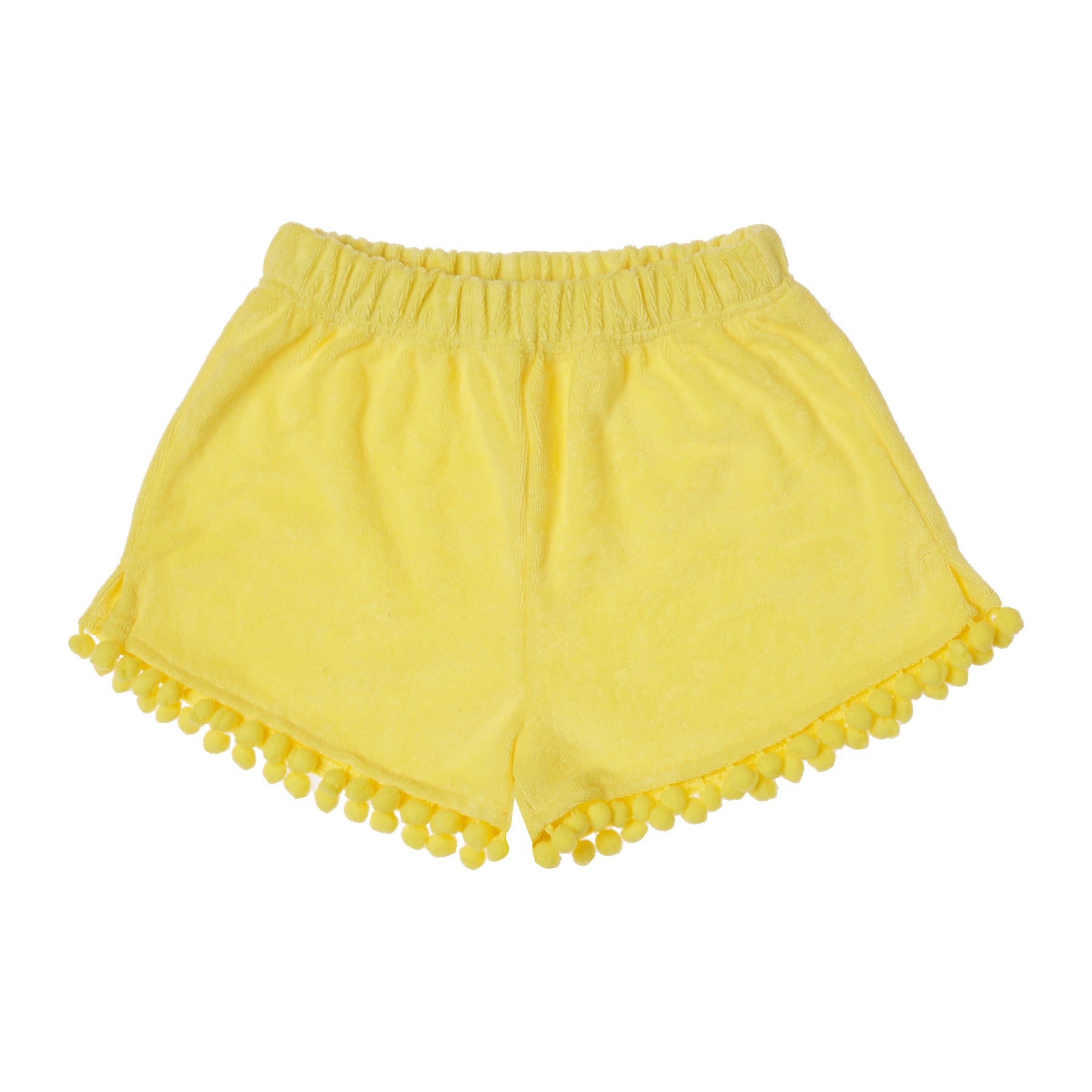 Set her ablaze with summertime style in our girl's terry shorts in yellow. Crafted from plush terry fabric, these shorts wrap her in a cozy embrace of comfort and confidence. With their relaxed fit and soft texture, they're ideal for both playtime adventures and casual outings with friends. Whether she's exploring the great outdoors or simply lounging in the sun, these terry shorts in yellow are sure to ignite her sense of adventure and creativity.